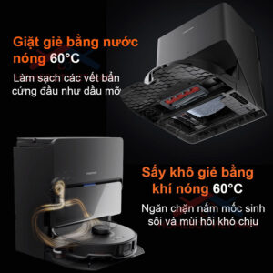 Ngay sau quá trình giặt, phần khăn lau nhà và đế sạc của S8 MaxV Ultra sẽ trải qua quá trình sấy khô nhanh chóng bằng khí nóng 60°C. Điều này không chỉ ngăn chặn sự phát triển của nấm mốc và mùi hôi khó chịu mà còn giữ cho robot luôn ở trạng thái sẵn sàng cho lần hoạt động tiếp theo.