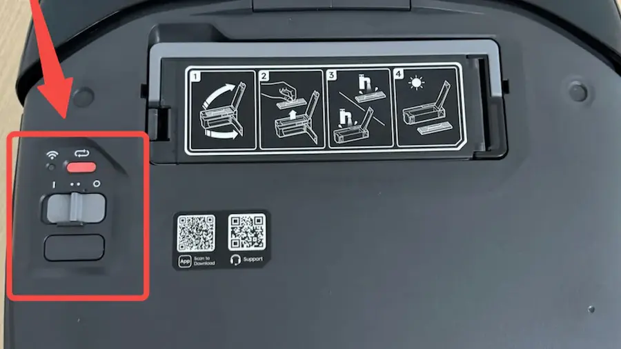 Hầu hết các dòng robot hút bụi hiện nay đều được trang bị công tắc nguồn vật lý. Vị trí công tắc thường nằm dưới nắp máy, gần hộp bụi hoặc ở cạnh thân.