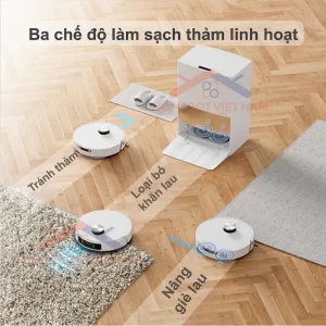 Tự động nâng giẻ khi gặp thảm: giúp robot dễ dàng hút bụi trên thảm mà không làm ướt thảm.