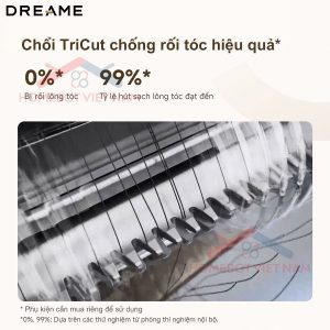 Robot hút bụi lau nhà Dreame L30s Ultra còn được trang bị chổi TriCut, một giải pháp tối ưu để chống rối tóc và lông thú cưng. Với thiết kế động học dạng chữ V, chổi TriCut có khả năng tự động cắt tóc và lông thú cưng quấn vào chổi, đảm bảo hiệu quả làm sạch cao mà không gặp phải tình trạng tóc rối thường thấy. Chổi này dễ dàng thu gom bụi bẩn và các khe hở trên sàn và thảm, nhờ vào khả năng làm sạch đa bề mặt. Theo các thử nghiệm từ phòng thí nghiệm, chổi TriCut đạt tỷ lệ chống rối 0% và tỷ lệ thu gom tóc lên đến 99%, đảm bảo hiệu quả vượt trội trong mọi tình huống. (Lưu ý, chổi TriCut là phụ kiện tùy chọn và cần mua riêng.)