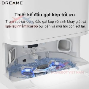 Trạm sạc của Dreame L30s Ultra được trang bị đế giặt tự làm sạch tiên tiến với 2 cần gạt xoay, giúp loại bỏ triệt để bụi bẩn còn sót lại trên khăn lau và đế giặt. Hệ thống tự làm sạch này có khả năng loại bỏ 99% bụi bẩn, ngăn ngừa mùi khó chịu, đảm bảo robot luôn ở trạng thái sạch sẽ và sẵn sàng cho lần hoạt động tiếp theo.