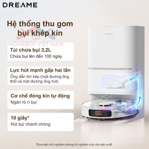 Hệ thống tự động thu gom bụi của Dreame L30s Ultra được thiết kế tiên tiến với khả năng lưu trữ bụi lên đến 100 ngày. Với hai ống dẫn khí tạo thành vòng tuần hoàn khép kín, hệ thống này ngăn ngừa rò rỉ bụi bẩn từ hộp bụi, miệng hút và túi đựng bụi. Túi thu gom bụi dung tích 3.2L không chỉ có khả năng tiêu diệt 99.9% vi khuẩn mà còn lọc các chất gây dị ứng, đảm bảo không khí trong nhà luôn trong lành. Hệ thống hút kép với hai ống dẫn khí – một ống thổi và một ống hút, giúp thu gom bụi nhanh chóng chỉ trong 10 giây, mang lại sự sạch sẽ tối ưu cho ngôi nhà của bạn.