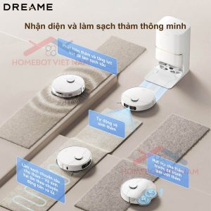 - Nhận diện thảm thông minh, tự động điều chỉnh chiến lược làm sạch