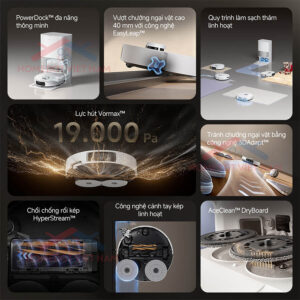 - Lực hút mạnh mẽ 19.000Pa làm sạch sâu hiệu quả