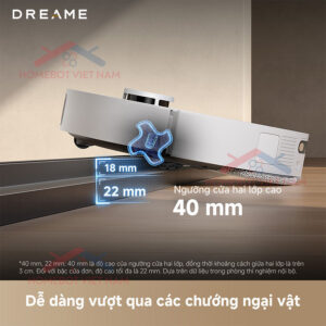 Bánh xe có khả năng leo qua bậc cửa cao đến 40mm, một con số ấn tượng trong phân khúc robot hút bụi. Nhờ đó, Dreame L40s Ultra có thể di chuyển linh hoạt qua mọi khu vực trong nhà, từ sàn gạch, sàn gỗ đến thảm lót sàn dày mà không lo bị mắc kẹt.