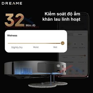 Robot hút bụi lau nhà Dreame X40 Master mang đến khả năng tùy chỉnh độ ẩm khăn lau với 32 mức độ khác nhau, giúp bạn dễ dàng đạt được hiệu quả làm sạch tối ưu. Đặc biệt, robot có khả năng phát hiện nước bẩn và tự động điều chỉnh lượng nước để lau lại những khu vực bẩn nhiều, nâng cao hiệu quả làm sạch. Bạn còn có thể sử dụng ứng dụng DreameHome để làm sạch sàn nhà và thảm hai lần, đảm bảo ngôi nhà luôn trong trạng thái sạch sẽ và tươi mới.