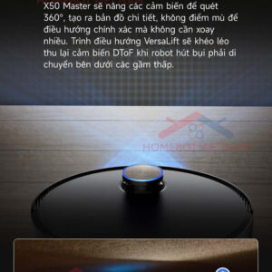 Công nghệ VersaLift™ giúp Dreame X50 Master có thể leo lên các bậc cao đến 6cm một cách linh hoạt và đổi hướng nhanh chóng khi gặp chướng ngại vật. Điều này đảm bảo robot luôn hoạt động trơn tru, không bị mắc kẹt hay gián đoạn trong quá trình làm sạch.