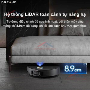 Các khu vực thấp như gầm giường, tủ, sofa thường là nỗi ám ảnh của việc vệ sinh, nhưng với Dreame X50 Ultra, vấn đề này được giải quyết triệt để. Hệ thống LiDAR toàn cảnh tự nâng hạ giúp robot điều chỉnh độ cao linh hoạt, kết hợp với thiết kế thân máy siêu mỏng chỉ 8.9cm, robot có thể tiếp cận mọi ngóc ngách và làm sạch toàn diện.
