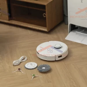 Những phụ kiện đi kèm của Ecovacs Deebot T10 OMNI thường khá đơn giản, nhưng đủ đáp ứng được yêu cầu cần thiết cho việc sử dụng và thay thế khi cần. Đi kèm với robot hút bụi lau nhà có thêm các phụ kiện đi kèm: trạm sạc, dây nguồn, chổi lau, chổi quét.