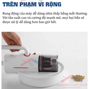Khay hộp bụi đặt phía trước, dễ dàng kiểm soát lượng bụi bẩn. Đế máy có 3 tấm rung, giúp làm bật bụi bẩn và các vi sinh vật dưới đệm, giường, ghế sofa lên bề mặt, giúp vệ sinh sạch sẽ và hiệu quả hơn.