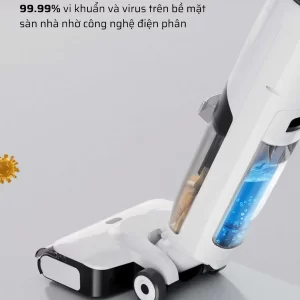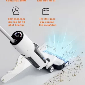 Với thời lượng pin lên đến 40 phút, bạn có thể dễ dàng làm sạch một phòng rộng mà không cần phải lo lắng về việc sạc lại hoặc thêm nước. Sự kết hợp giữa bình nước sạch 650ml và nước bẩn 650ml cũng là một điểm nổi bật của sản phẩm, giúp bạn tiếp tục làm việc mà không bị gián đoạn để thay nước. Với khả năng này của máy lau nhà khô ướt, bạn có thể hoàn thành việc làm sạch một diện tích lớn lên đến 180m2 một cách dễ dàng và hiệu quả, mang lại không gian sống sạch sẽ và thoải mái cho gia đình mình.