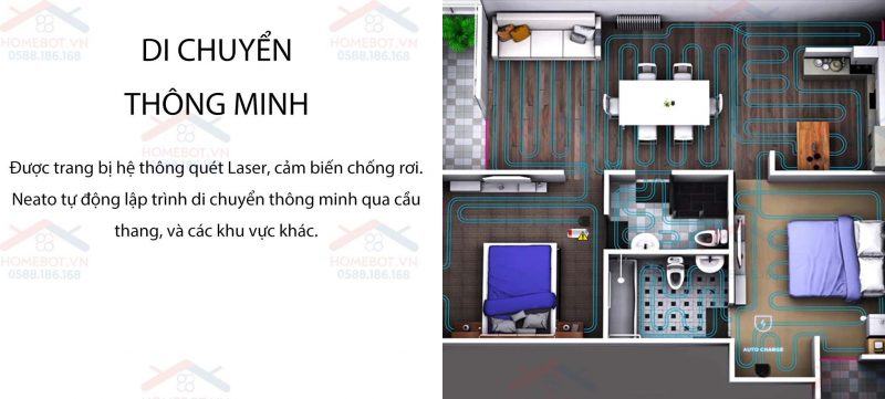 - Thuật toán SLAM nhận diện vị trí chính xác trong căn phòng.
