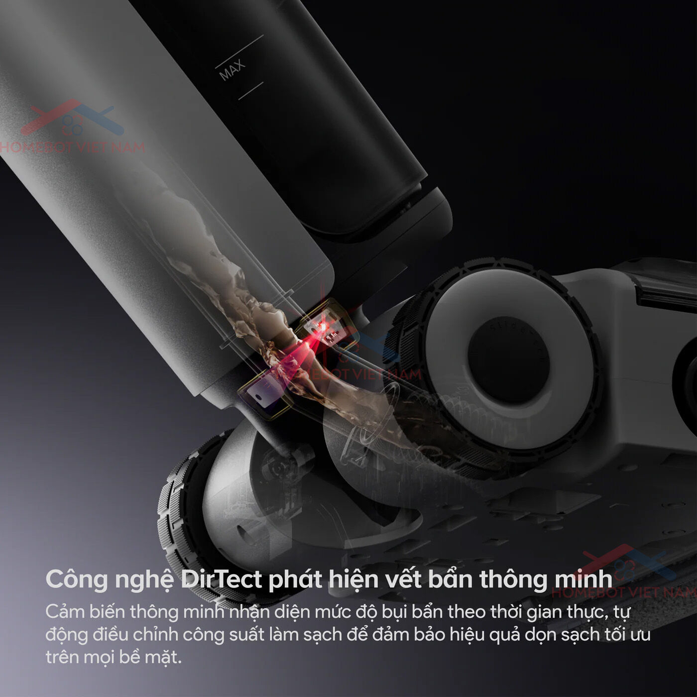 • Công nghệ DirTect: Nhận diện vết bẩn thông minh, tự động điều chỉnh hiệu suất làm sạch.