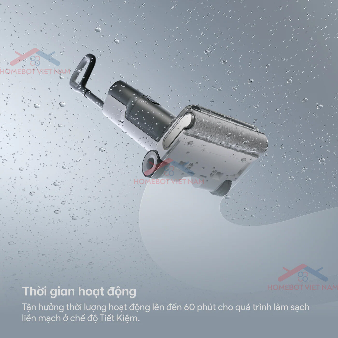 • Hoạt động bền bỉ lên đến 60 phút: Đảm bảo dọn dẹp liên tục không gián đoạn cho diện tích lớn.