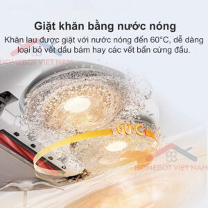 Q Revo MaxV áp dụng công nghệ giặt khăn bằng nước nóng với khả năng điều chỉnh nhiệt độ lên đến 60°C. Điều này làm tăng hiệu suất làm sạch, giúp robot dễ dàng loại bỏ vết dầu mỡ bám vào khăn và các chất bẩn khó tẩy rửa.
