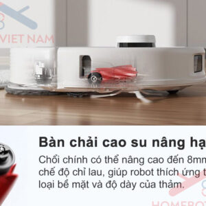 Chổi lăn có thể linh hoạt nâng lên và hạ xuống tùy theo từng trường hợp trong quá trình làm việc. Mô-đun nâng có thể điều chỉnh chiều cao lên đến 8mm khi sử dụng chế độ chỉ lau. Sự linh hoạt này giúp robot thích ứng tốt với nhiều loại bề mặt và độ dày của thảm khác nhau, mang lại kết quả làm sạch tối ưu.