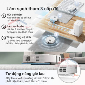 - Cấp độ 3: Nhận diện thảm bằng sóng siêu âm và tự động tăng cường lực hút khi di chuyển trên thảm