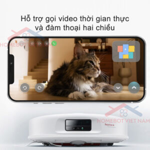 Camera tích hợp tính năng gọi video thời gian thực và đàm thoại hai chiều, giúp bạn có thể quan sát và trò chuyện trực tuyến với các thành viên trong gia đình thông qua robot hút bụi lau nhà Q Revo MaxV, tạo trải nghiệm kết nối độc đáo giữa người dùng với robot.
