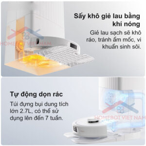 - Tự động thêm nước sạch vào bình chứa trong robot, đảm bảo độ ẩm cho khăn lau