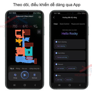 Bạn có thể kích hoạt trợ lý giọng nói thông minh của Roborock Q Revo MaxV bằng cách đơn giản nói “Hello Rocky”. Điều này giúp bắt đầu quá trình làm sạch mà không cần phải chạm vào robot hoặc ứng dụng điều khiển.