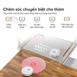 - Trạm sạc đa năng: đổ rác tự động, giặt giẻ nước nóng 60°C, sấy khô khí nóng