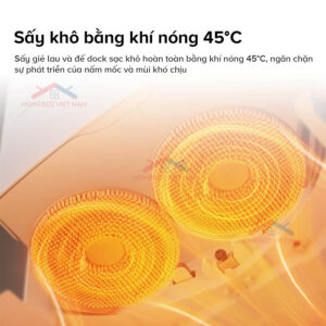 Không chỉ vậy, dock còn có khả năng tự giặt khăn lau bằng nước nóng 60°C với quy trình mô phỏng hoạt động của máy giặt: giặt sơ, xả và vắt khô tốc độ cao. Khăn lau sau đó sẽ được sấy khô bằng khí ấm 45°C, giúp khử mùi, diệt khuẩn và ngăn ngừa ẩm mốc hiệu quả. Tất cả được thực hiện hoàn toàn tự động, giữ cho robot luôn trong tình trạng sạch sẽ, sẵn sàng làm việc bất cứ lúc nào.