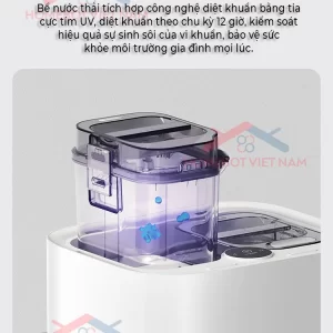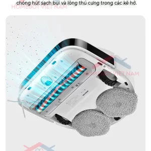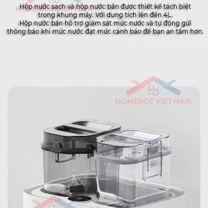 Trạm sạc của robot có ngăn chứa nước 4L, có thể điện phân nước thành nước vô trùng, làm ẩm đều cho 2 giẻ lau và tỷ lệ khử trùng cao tới 99,9%. Ngoài ra, trạm sạc còn có chức năng khử trùng nước bằng tia cực tím UV, tiệt trùng 12 giờ/ lần, ức chế hiệu quả sự phát triển của virut và vi khuẩn, bảo vệ môi trường gia đình bạn luôn luôn an toàn, trong lành và sạch sẽ.