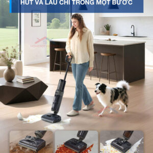 Ngoài ra, tay cầm tích hợp nút điều khiển thông minh, cho phép bạn khởi động và điều chỉnh chức năng nhanh chóng chỉ bằng một thao tác. Thiết kế xoay linh hoạt 45 độ cùng bánh xe trợ lực giúp máy di chuyển mượt mà, giảm áp lực lên tay khi sử dụng. Nhờ vào thiết kế nhẹ và không dây, bạn có thể dễ dàng mang máy đi khắp nhà, kể cả di chuyển lên xuống cầu thang một cách thuận tiện và thoải mái.