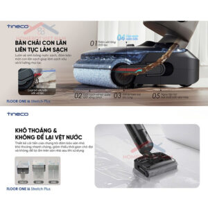 Bên cạnh đó, Tineco Floor One i6 Stretch Plus có khả năng hoạt động liên tục 40 phút chỉ với một lần sạc, phù hợp cho việc làm sạch toàn bộ không gian sống. Đặc biệt hơn nữa, Tineco Floor One i6 Stretch Plus còn có chức năng tự động giặt con lăn bằng nước nóng và sấy khô bằng khí nóng 85°C trong 5 phút, ngăn ngừa tình trang vi khuẩn phát triển.