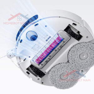 Đặc biệt, bàn chải và khăn lau nhà cạnh bên của robot có thể được nâng lên một cách thông minh tùy theo nhu cầu của các tình huống làm sạch hộ gia đình. Có sẵn 5 tùy chọn giặt thảm, quét và lau nhà phù hợp hơn với thói quen dọn dẹp nhà cửa của từng gia đình như tự động nâng khi gặp thảm, hút trước sau đó lau và tự động nâng lên làm sạch khô và ướt, tự động nâng lên khi khăn bẩn và về vị trí giặt khăn để tránh làm bẩn các vị trí khác trên sàn nhà, có sẵn 5 lựa chọn làm sạch thảm, sấy nâng khăn để cải thiện hiệu quả sấy.