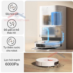 - Trạm sạc đa năng hiện đại: tự động dọn rác, giặt & làm khô giẻ lau.