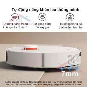 Robot cũng có khả năng tự động nâng cao khăn lau khi hoạt động trong chế độ chỉ hút hoặc khi di chuyển về trạm sạc giặt khăn lau để tránh ô nhiễm thứ cấp.