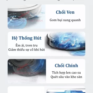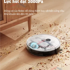 Công suất hút: lực hút mạnh, có thể xác định thảm một cách thông minh và tự động bật lực hút tối đa khi gặp thảm.